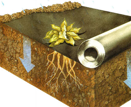 特殊な有孔構造が優れた透水性を実現。しかも強靭なシートなのでほとんどの雑草が突き抜けません。